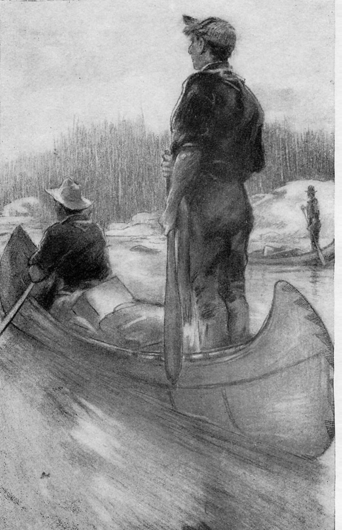 For here is where begins the Long Trail. Whether it will lead you through the forests, or up the hills, or over the plains, or by invisible water paths; whether you will accomplish it on horseback, or in canoe, or by the transportation of your own two legs; whether your companions shall be white or red, or merely the voices of the wilds--these things matter not a particle. In the symbol of this little town you loose your hold on the world of made things, and shift for yourself among the unchanging conditions of nature.