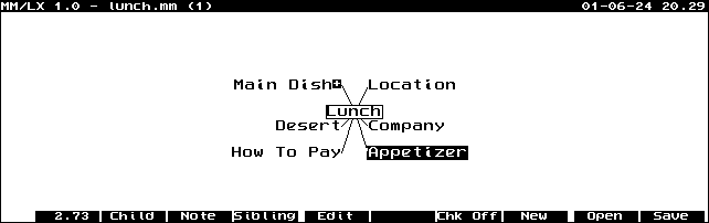 We are proud to present MindMap/LX (MM/LX) the newest program by Andreas Garzotto. This program implements mind mapping techniques on the HP Palmtop.