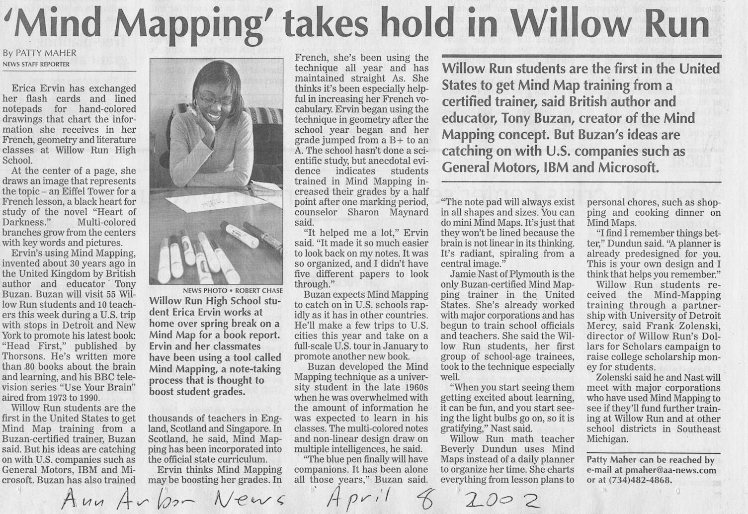 is a picture of an article from the Ann Arbor News, April 8,