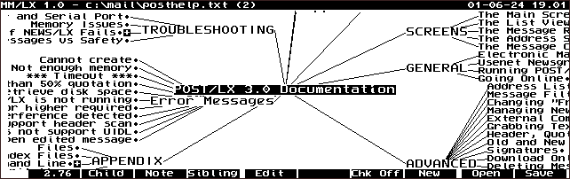 What we did: We exported, on the HP 200LX, in about 5-10 seconds, the entire HELP File of MindMap/LX. This contains the entire information which is on the help file when you press F1 in MM/LX! We then uploaded the HTML file - AS IS, UNEDITED - to the Website. click here to see it - and to see the many features of the MM/LX program.