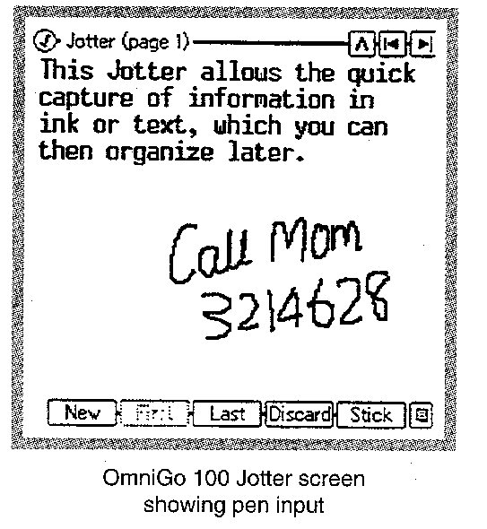 STRENGTHS Jotter holds a lot of graphics. The OmniGo 100 stopped me at 20 pages very full of graphics. It lets you enter your notes or drawings then Paste them to another application.