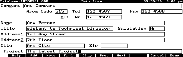 Individual Data Item for the Letter/Fax archive file created with the built-in Database program.
