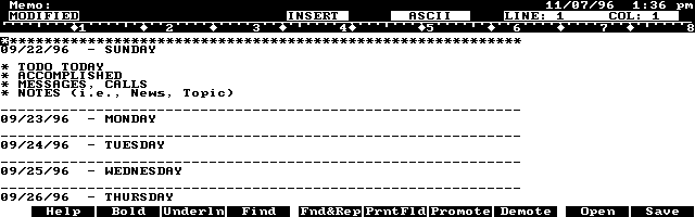 clipboard to copy the template to my Memo journal file. This sets up Sunday