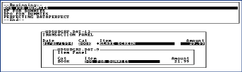 After the user chooses an Item DataPerfect automatically fills in the appropriate fields in the Transaction Panel. Screen 7 shows what the user sees after highlighting 'PERFECTING DATAPERFECT' and hitting ENTER.