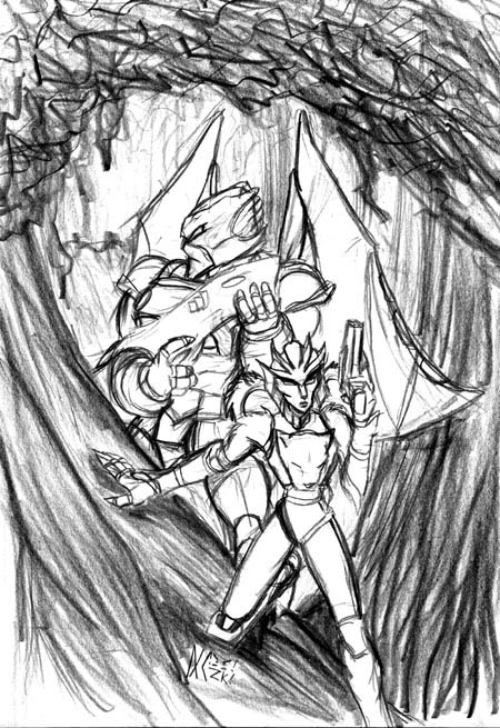 - "Razormoon" - Sketch of Razormoon, a bud of mine from TFSL. Pencil. (44k, 1-24-01)