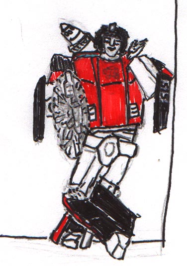 - Sideswipe - Sideswipe owns a special place on my display shelf since he was the first real Transformer I ever owned. I bought the G2 S.S., and I really liked that scheme, but the comics and TV show compelled me to mix the colors a bit. (52k, 8-23-00)
