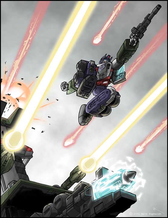 18. "Optimus: Turbo-Revvin' Young Punk" - The Machine Wars toyline, which has virtually no accompanying fiction, is extremely vague as to its placement in overall continuity. So its Optimus Prime could actually represent of the character's youth in the distant past. (51k, 8-7-02)
