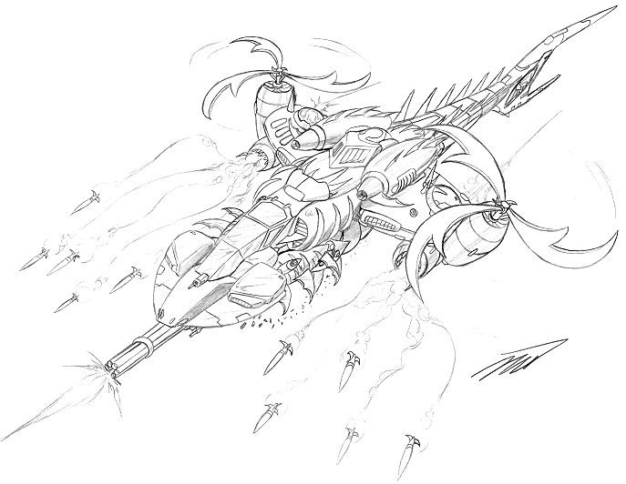 - Heavy Artillary Strafe - Where NoseCone went anti-aircraft, Strafe went ground-assault. Brings the most weapons to bear in space fighter mode. (87k, 9-26-00)