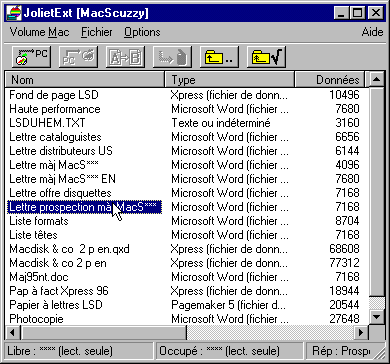 With MacDisk, the picture is quite different, isn't it? You know there are three Type 1 files, and three font suitcases (useless on the PC). You will be able to transfer them to the PC and convert them. The job is now easy!!