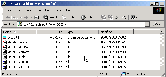 You probably already saw that: a series of zero-length files. What does that mean? Your partner had said s/he would put all necessary fonts on the CD-ROM, just in case, just to be sure... But what can you do with empty files? Nothing... You have to find another way around...