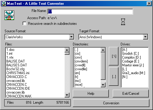MacText is a little text conversion program without bells and whistles. Its aim is converting some frequent Macintosh formats which are nevertheless completely ignored on the PC.