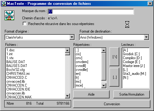 Résumé : MacTexte est un petit utilitaire de conversion destiné à traiter les formats de texte Macintosh ignorés par les grands programmes de traitement de texte sur le PC.