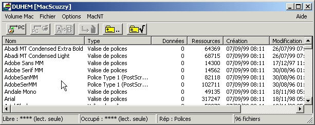 Summary: Illustration of the problems encountered when trying to access a volume handled by SFM on a NTFS drive and of the solutions we propose. Some pictures showing how Macintosh files are presented under NTFS with SFM and under MacDisk.