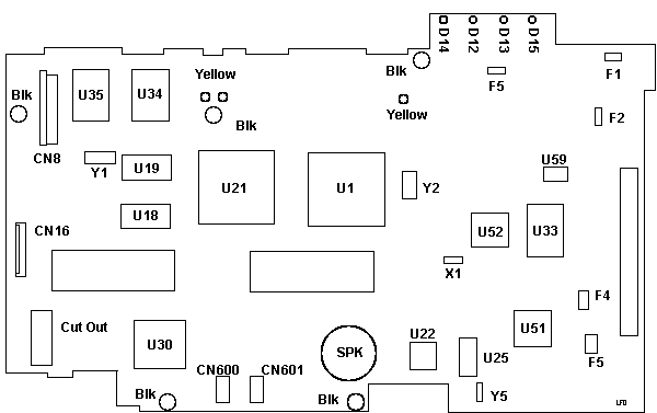 Note- The yellow screws hold the PCMCIA socket frames to the board. Do not remove them.
