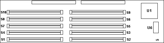 There are three different memory sizes available, 2, 4, and 8MB. From this, I posit that the Crossbow supports 256K, 512K, and 1MB 30 pin SIMMs. Further, note there are five SIMMs per bank. I believe that one SIMM per bank provides ECC, like that on the 7568 Gearbox systems. SIMMs in the great William R. Walsh psychadelic retro