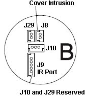 J8 Cover Intrusion Port This connector is a standard 2-pin, 2-millimeter, center-line connector. The two pins are routed to the cover intrusion detector