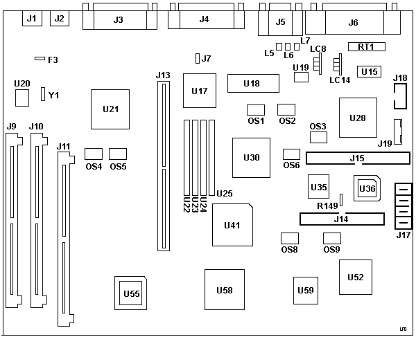 U22-U25 Toshiba TC511665Z-80H 40 pin ZIP VRAM Functionality J7 has a little sticker over it that says "J18" The 57SX supports up to 16MB of 70-ns memory (all DMA addressable) on the planar in three SIMM sockets. The memory controller automatically supports enhanced performance via memory interleaving with all 2MB or all 4MB SIMMs. One, two or three 2MB SIMMs provide memory interleaving. Two or three 4MB SIMMs also provide memory interleaving. The 8MB SIMMs do not provide interleaving. Video is provided via the enhanced 16-bit industry-standard VGA. supports 720KB, 1.44MB and 2.88MB diskettes 8557SX Bus Adapter