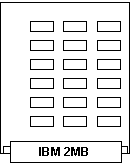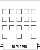 This explains why the 4Mb modules are treated as 2Mb in a Type 1 planar. I don't know if any of the presence detects signify memory speed. The chart above shows the newer 2Mb board. Another surprise is the little memory cards that go on the @FAFF.ADF 2 - 6Mb 386 Memory expansion board are the same pinouts. Of course each board is 2Mb & the presence detect is the same as above. I don't believe this board was offered in any other capacity. You can use one of these little cards on the planar, although it has to be in the slot furthest from the power supply due to the keying & right-angle of the connector. At least the chips are conventional & marked as 85nS.