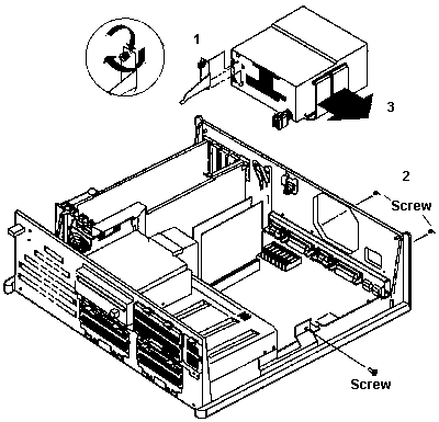 (1) Remove the power supply from the case. Look HERE.  First, remove the power connections from any internal devices (hard drives, CD-ROMs, etc), remove the sheet metal "bracket" between the power supply and the drive cage, then remove the screws in the back. "Flop" the power supply 180 degrees from left to right to make it easier to access the planar power connectors, and then remove the connectors.