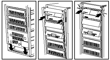 Press a rail guide into each side of the DASD support structure. The left and right guide rails are the same.