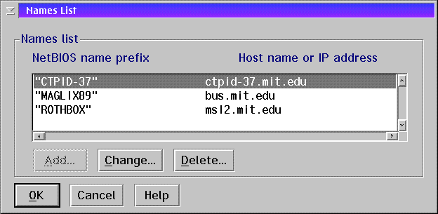 Selecting the Names List radio button and clicking on Configure yields a listbox: