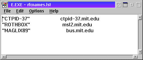 The only tricks are (a) to make sure that the NetBIOS names in the RFCNAMES.LST file are inside of double quotes; (b) put a space (or several) between the NetBIOS name and the hostname/IP address; and (c) make sure that every hostname/IP address that appears in the RFCNAMES.LST file also appears in the RFCBCST.LST file. You can edit these files at any time, but any changes you make will not be recognized by the peer daemon processes until you run RFCADDR after saving these files. Done! Your machine is now peered to the MITNet. If you want to drive someone crazy, you can even use the Network Messaging tool to send messages to those machines whose names you have registered - and they'll be unable to get back to you if they're on an NT machine. To get those NT machines to recognize you, you'll have to get the users on the other end to make some changes to their machines. Getting The NT Machines To Behave (top) There are three rules that the NT machines you wish to peer with must follow: