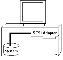 Three of the four 3511 SCSI External Storage Enclosures contain seven SCSI hard drives. The fourth storage enclosure only has six SCSI hard drives because it's SCSI Adapter also supports the System Disk.. This example is for IML systems that require a System disk. A non-IML system could dispense with the system disk and use seven drives in each 3511. Backup Server using
