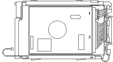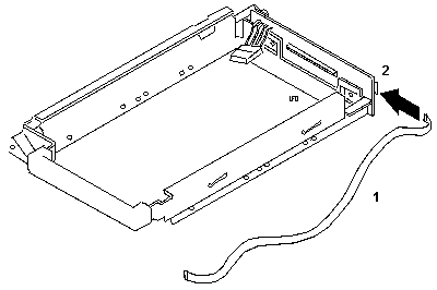 Assembling the Hot Swap Tray for a PC Server This section describes assembling the Hot Swap Tray for a PC Server. If you are installing the Hot Swap Tray in a Server 95, go to “Assembling the Hot Swap Tray for a Server 95” on page 13. Before installing a hard disk drive into the Hot Swap Tray, be sure to read the information in “Handling Static-Sensitive Devices” on page 3. Important: Do not operate the latch mechanism (1) until the hard disk drive is secured in the tray. The latch mechanism is used to lock the tray in place after it is inserted in the computer or storage enclosure. Use the following steps to assemble the Hot Swap Tray. 1. Refer to the documentation that came with your hard disk drive to determine the location of the SCSI ID connector on the drive. If your hard disk drive SCSI ID connector is on the back of the drive, use the short SCSI ID cable. If your hard disk drive SCSI ID connector is on the front of the drive, use the long SCSI ID cable. Attach the appropriate SCSI ID cable (1) to the connector on the tray (2). 2 If your hard disk drive SCSI ID connector is on the back of the drive, connect the SCSI ID cable to the drive now and continue with step 3 on page 8. If the connector is on the front of the drive, opposite from the power and signal connectors: a. Place the tray on a flat surface with the latch (1) on the left. b. Route the SCSI ID cable (2) along the right side of the tray, inside the tray rail, as shown. 3. If your Hot Swap Tray has a flat mylar ribbon cable as the signal cable, it uses a 16-bit SCSI connection. Refer to the top illustration. If you have the 8-bit signal cable, refer to the bottom illustration. Note: Ensure that the mylar ribbon signal cable is securely attached to the connector on the tray before continuing.