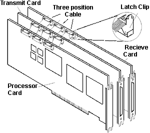 The HIPPI adapter set consists of three cards. Interconnection is made by three controlled impedance flex circuit cables. The complete HIPPI subsystem requires five Micro Channel slots. The two additional slots are needed to meet Micro Channel requirements. One vacant card slot is required adjacent to the receive card to insure proper component clearance. In other words there are some tall components on the solder side of the receive card. Note: Be sure to install adapters