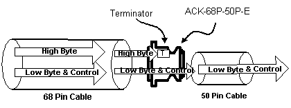 In order to go from a 68-pin external connection to a 50-pin external connection, all that is required is termination of the High Byte.