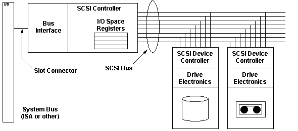 different devices, more devices (ranges from 7 to 15 devices). SCSI may