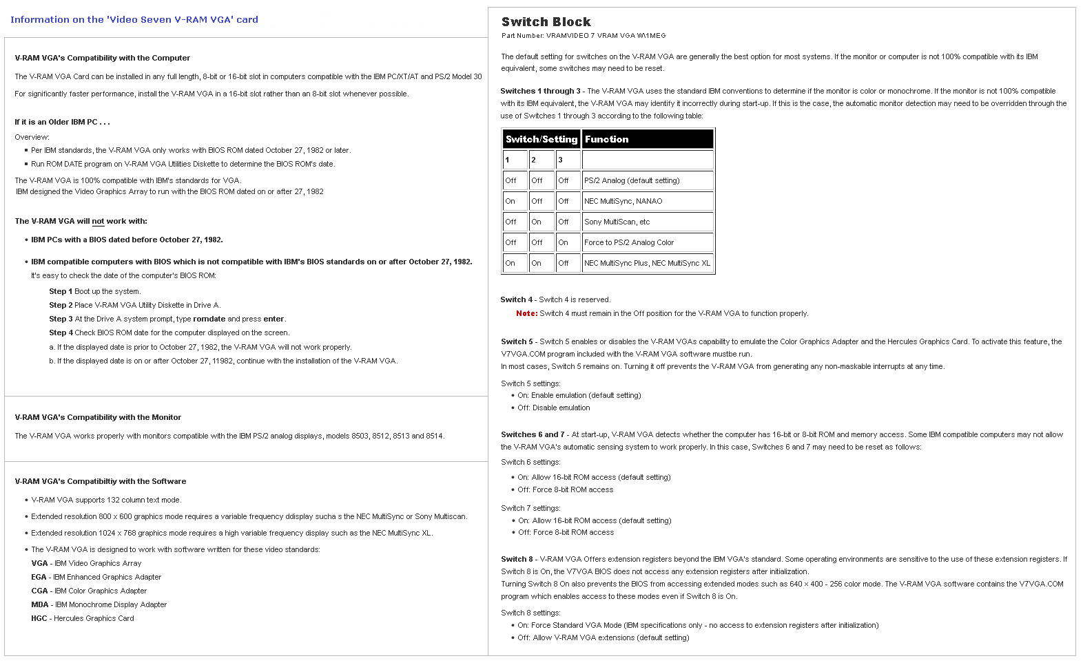 VEGA VGA - Configuration       (8-bit VGA/EGA/CGA/MDA video card)   (no manual yet)   (photo of early version)