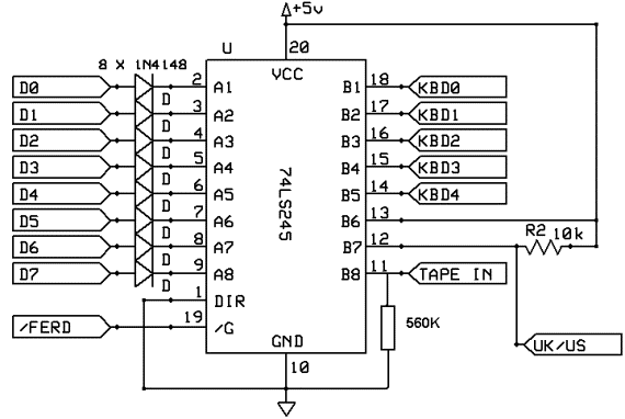 The tape input (pin 20) is connected to a simple