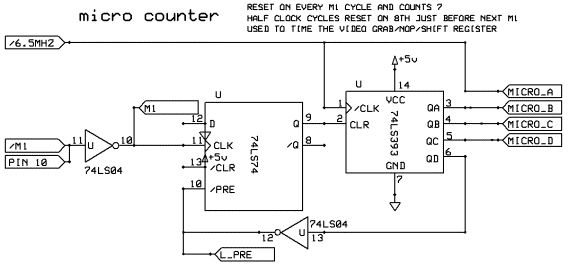 the CPU clock by the /6.5Mhz signal when the count reaches 8 it presets the Q