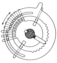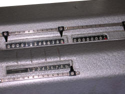 lever to make ratchet or gear rotate other gears to set a number. You