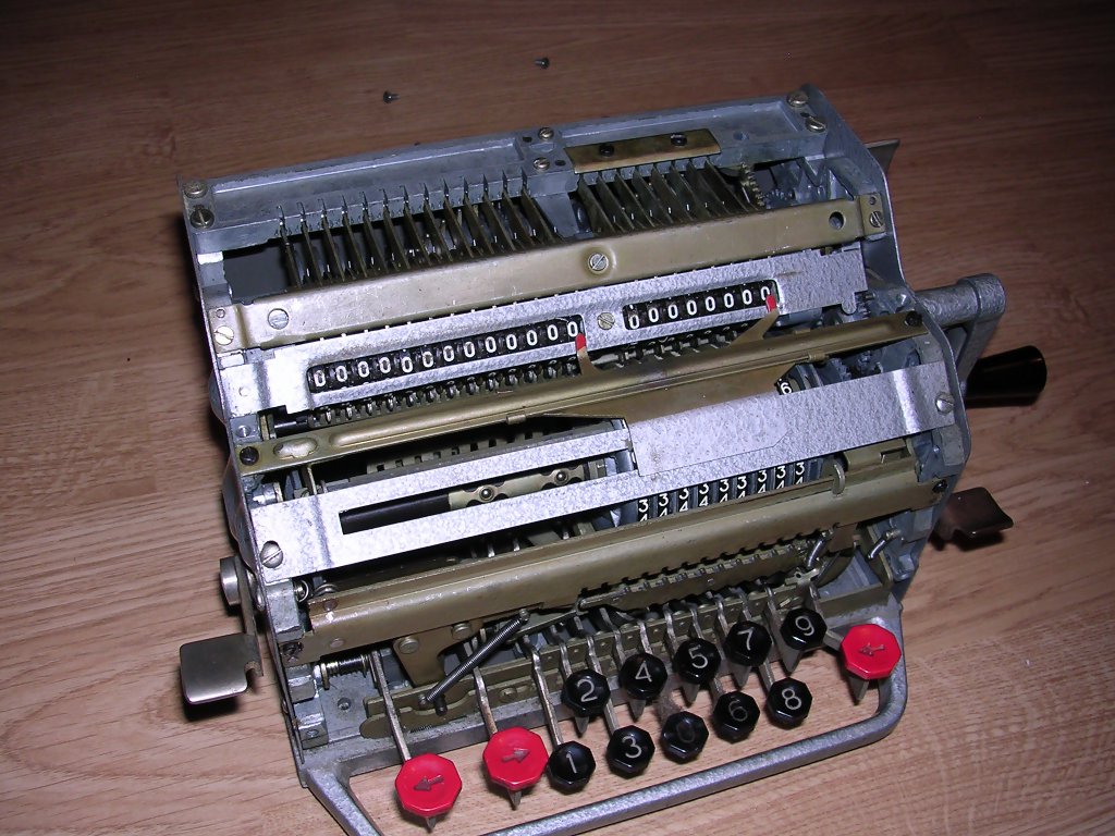 Revolution came in 1890, when W. Th. Odhner, Swedish engineer working in Russia, started to manufacture pinwheel arithmometers en masse. These arithmometers, invented 15 years earlier, were much cheaper and simpler, so they became available for offices or bureaus. "Odhner arithmometers" or "Brunsviga" arithmometers (clone) were manufactured in many factories to late 1970s. You can read more about Odhner arithmometers reading about Feliks arithmometer, as it's Odhner's clone.