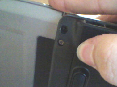 This photo shows quite nicely where to start, you should do it from camera to the bottom on both sides. If you have it "unlocked" on both sides and near camera, let's go to the last hook on the top of bezel: Rotate camera a bit lower and you'll se it right below the camera (photo on the right, the shiny thing in bottom-left is the top of webcam).
