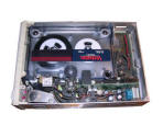 To write or read a whole tape, head assembly was targeted to a track first. Then, the tape was wound. After it reached the end marked by dots readable by optical sensor, the head was re-positioned to the next track and the tape was wound backwards.
