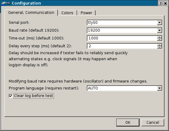 port - is a serial port for tester. It can be separated with : and