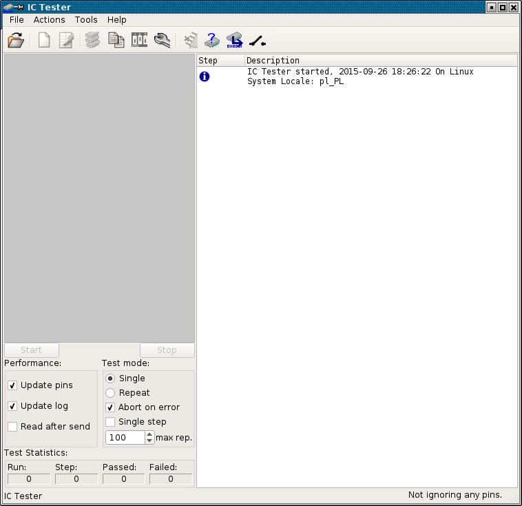 Then you must configure your tester according to drawing and after putting IC in socket hit OK to start the test. Any time you can display current sheet's power configuration by pressing Show Power Requirements button in toolbar.