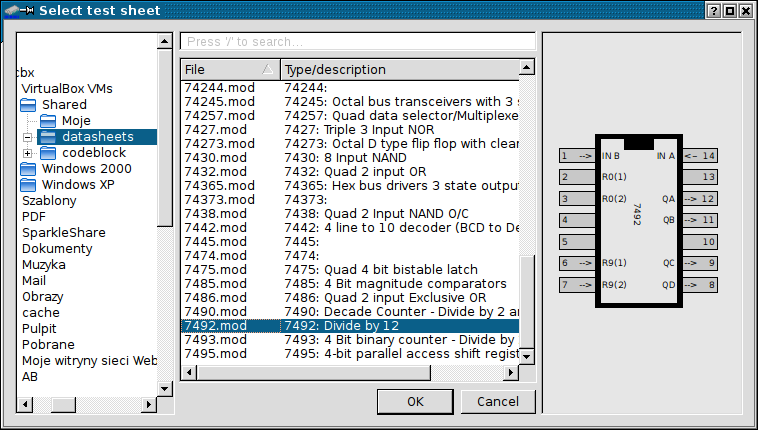 The first thing to do is to load test sheet for verified circuit. To do it, press the first button in toolbar or select item from File menu. File menu keeps list of 10 recently used test sheets. After you click Open icon, Open dialog pops up: