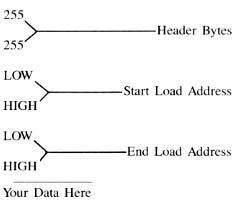 your BASIC program made into a binary load file, you can start appending data and M/L routines to your main program freely, as long as the data you append has binary load pointers. |