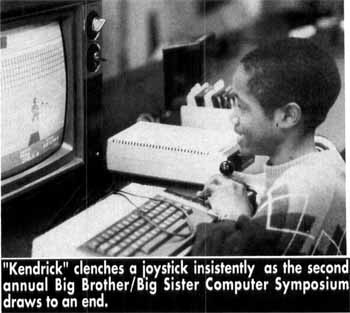 "The older folks tend to be steadfast in their ways, and in some cases they really don't understand computers. But the kids are not intimidated by them. I think they are more mystified by them rather than stupefied. At the symposium, I remember watching a little girl working with the speech synthesizer program. From the start I could tell she may have been a little introverted. However, the more she typed, the more she seemed to be saying, and the more she said, the more she brought herself out in what she said. It wasn't so much the words, but the content of those words. I think she acted that way because she could identify with the computer. She was right there, face to face with it, and it wasn't judging her. I also remember Kendrick. From the time he came in early in the morning, he was really having a ball. He played one game for about five minutes and all of a sudden, he was the expert. Then he was showing everyone else how to do it. I could tell he wasn't shy at all."
