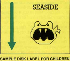 Nonreading children will especially appreciate pictures on disk labels. For example, a picture of a shark tells my daughter that the disk contains her favorite matching game, Seaside (by Frank M. Hundley, October '89 ST-LOG). A picture of a Christmas tree identifies the disk with O Tannenbaum! (by this author, November '89 ANALOG).