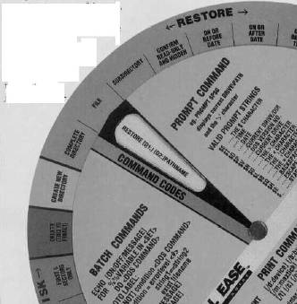 Wheel Ease Reference has introduced the Wheel Ease Software Guide which puts into a simple Framework major command codes for many software packages. You look along the outside ring of the wheel and find the task you're trying to accomplish—create a new directory for example. Next line up the ???inner wheel's window with the name of the task, and the command you need appears in the command-code window.