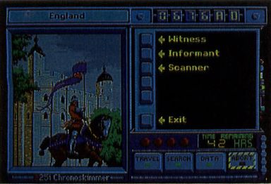Since everybody knows that traveling in a time capsule transcends real time, when you play Where in Time, you'll waste no nights sleeping in hotels as you might in the other Carmen programs. But don't think you're getting away with anything. Unlike the other games in the series, your cases in this game carry time limits measured in hours rather than days! Preparing your chronoskimmer takes time, as does all of your investigating.