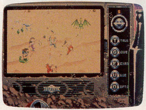 The game comes with a 20-page manual that includes a map of the Plains and a list of Mutant Chat terms, a reference card, and a copy of Thale's Comprehensive Guide to the Beasts & Savages of the Plains. This foldout not only describes the beasts you'll encounter on the plains, but it also serves as copy protection for the program. Before starting, for instance, you must answer a question such as Where does a Bushbug usually hide?