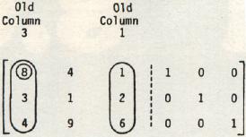 To place 8 in the pivot position, columns 1 an 3 are switched (lines 3120 and 3130). Vector M "remembers" the column interchange.