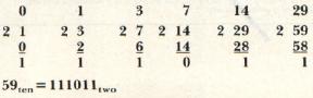 Solution: Successively divide 59ten by two, with the divisions beginning from the right and proceeding to the left.