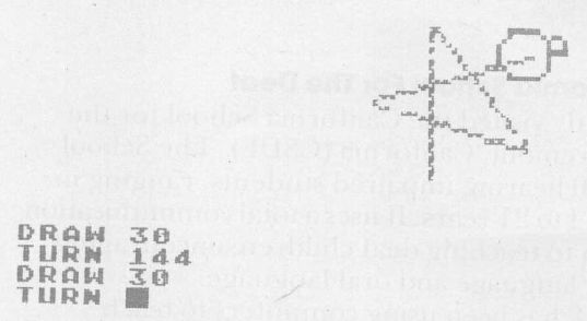 Several owners of the new IBM computer wrote me for information. While I don't know of any commercial turtle graphics packages for that machine yet, several programmers wrote to tell me they are working on the problem. Any computer with a graphics display should be able to support this graphics environment as long as someone is willing to create the language. I remember back in 1978 when WSFN was released as a turtle graphics language for the PET by the Peninsula School Computer Project (Peninsula Way, Menlo Park, CA 94025). It shouldn't be too hard to get this language to run on the VIC, or on the forthcoming $150 Commodore Ultimax. If you enjoy writing languages, keep me informed of any turtle languages you create.